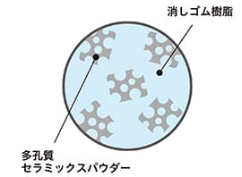 特長④:“いつもカドで消す感触”を実現した消しゴム樹脂