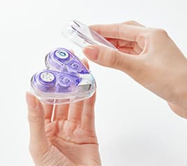 修正テープのようにテープを引くだけでデザイン柄が転写され、手帳、ノート、カードを華やかに飾れるデコレーションテープ「デコラッシュ」。幅広い手帳ユーザーから大変好評をいただいています。今回は、「デコラッシュ」初心者の方でも悩まずに楽しめる2柄セット×3種。「デコラッシュ」の形状をいかし、ぴったり2個収納できるハート型のケースとセットにされています。