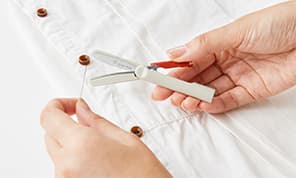 軽い切れ味が特長の”ベルヌーイカーブ刃”を採用。常に最適な刃の開き角度を保ち、刃の根元から先端までどの位置でも対象物をしっかりキャッチ。外出先での服のほつれ糸や、プリント・お菓子袋の開封、洋服のタグなど、さまざまな用途に重宝します。