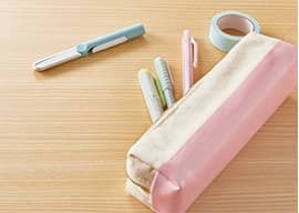 刃の外側全体を覆うカバーを付けることで、手が刃に触れる心配がなく、ポーチやペンケースに入れても中身を傷つけにくくしています。